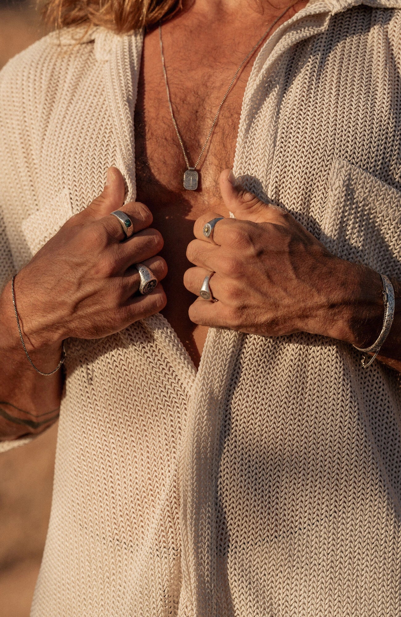 Eine handverlesene Auswahl unserer beliebtesten Schmuckstücke – goldene Töne und fließende Designs, inspiriert von der endlosen Schönheit der Dünen.